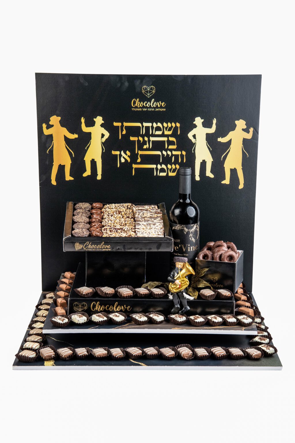 מארז ושמחת בחגיך יוקרתי איש מנגן, יין ומגוון שוקולדים