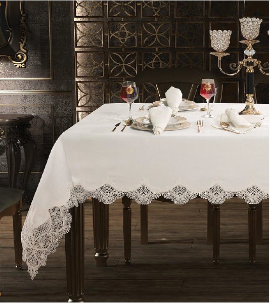 מפת קטיפה לבנה עם סיומת חגיגית / לבן