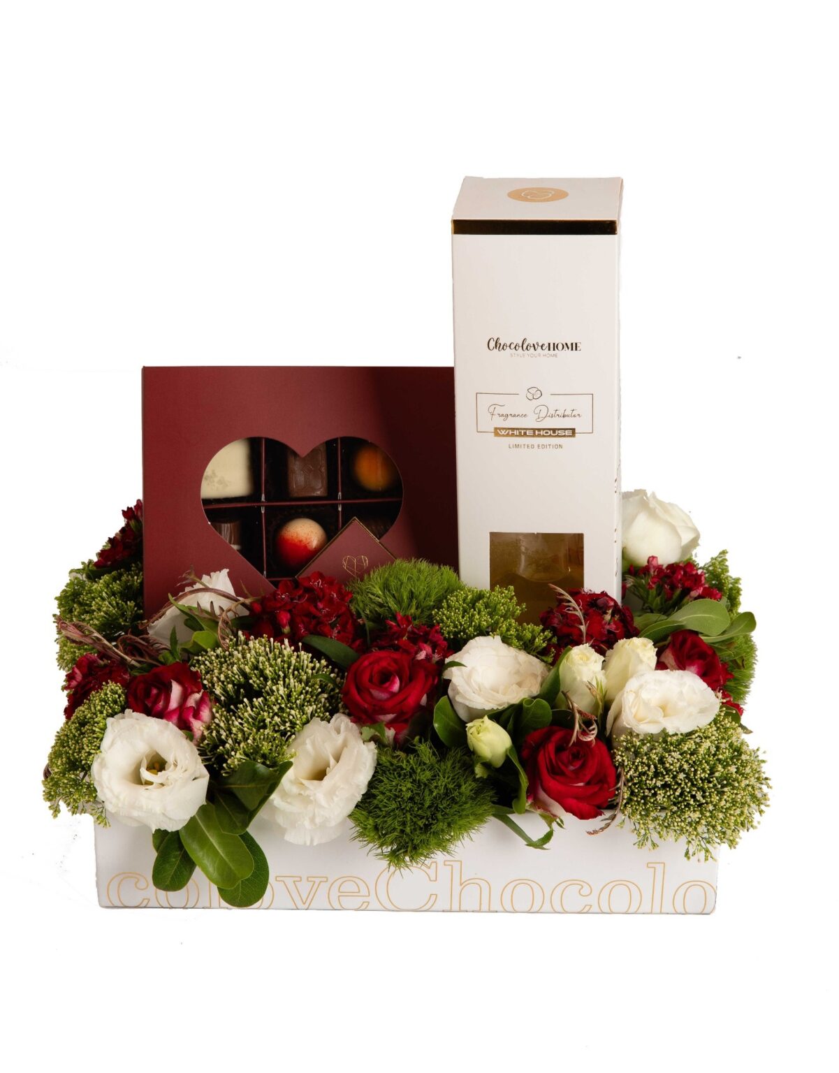 פרלינים מארז לב (9 יח), סידור פרחים ושושנים, מפיץ ריח